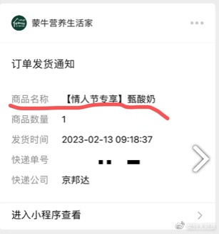 前两天,不少消费者在「蒙牛营养生活家」小程序参加了官方推出的情人节专享纯甄酸奶的活动。