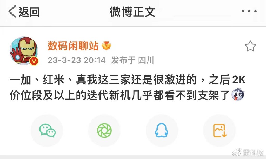 数码博主“数码闲聊站”在微博爆料,一加、红米和真我等厂商,计划在今年的中端机型上取消屏幕塑料支架。消息一经曝出,立刻引起了网友们的热烈讨论。