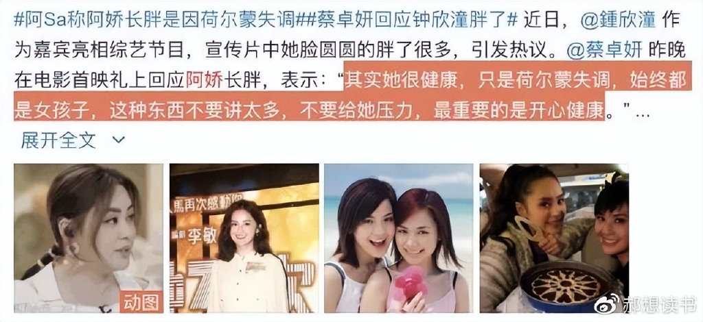 离婚之后,阿娇身材走样被大众质疑,阿Sa站出来解释:她很健康,是内分泌失调导致的,不要给她压力,健康最重要。