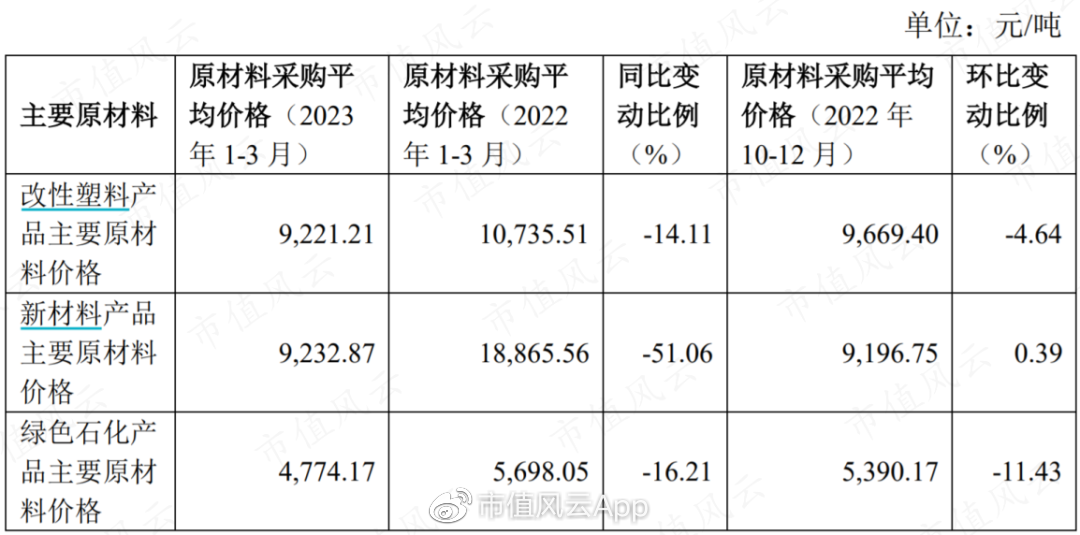 这主要是原材料采购成本降幅较大所致。2023Q1,公司的改性塑料、新材料、绿色石化产品的原材料采购价格无论是同比还是环比都出现明显下降,成本端压力趋缓。