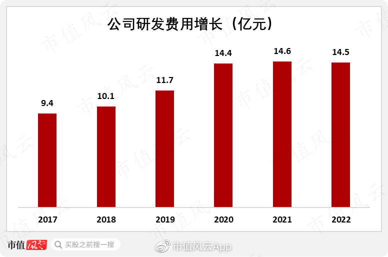 另一方面,公司长期坚持高研发投入。2017-2022年,公司的研发费用每年保持增长,由9.4亿元增至14.5亿元。