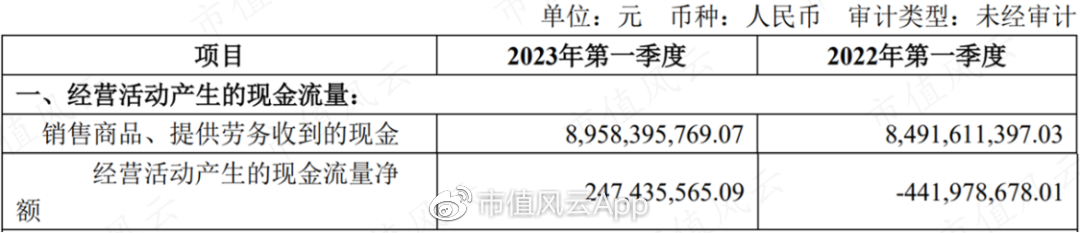 2023年一季报显示,公司的经营性现金流状况同比仍在进一步向好。