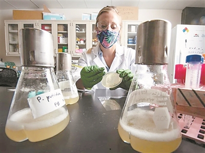 - 美国国家可再生能源实验室人员在测试塑料降解酶。图片来源:《自然》网站
