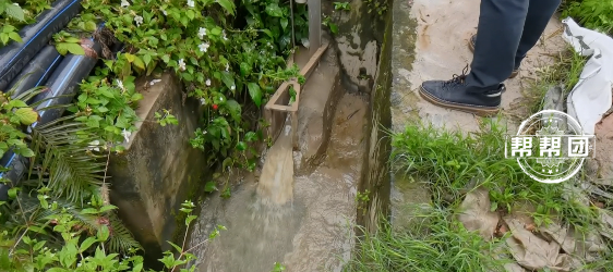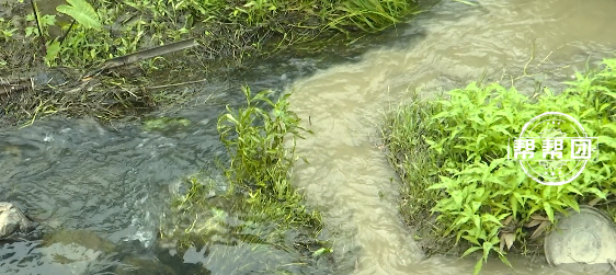 记者来到现场后发现,中午十一点左右,河流突然出现了浑浊的黄水,与旁边清澈的河水形成对比。