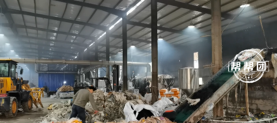 随后,记者来到该加工厂,厂区内堆满了大量的废旧编织袋或者塑料布。编织袋多是饲料袋,但记者也在其中发现了一些化工编织袋。