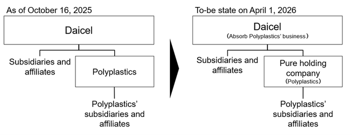 具体包括:将宝理塑料(日本公司)分立为(1)工程塑料业务(含相关附属业务)与(2)宝理塑料子公司及关联公司的股份持有与管理业务,Daicel将整体承接(1)部分业务。分立后,宝理塑料将继续保留法人资格。目前正在考虑变更宝理塑料及其日本与海外子公司、关联公司的名称,新公司名称及具体变更时间将另行公布。