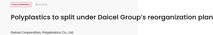 10月16日,日本宝理塑料发布公告,大赛璐株式会社(Daicel)决定自2026年4月1日起,通过吸收合并的方式,收购宝理塑料株式会社全部业务。