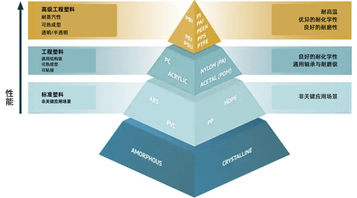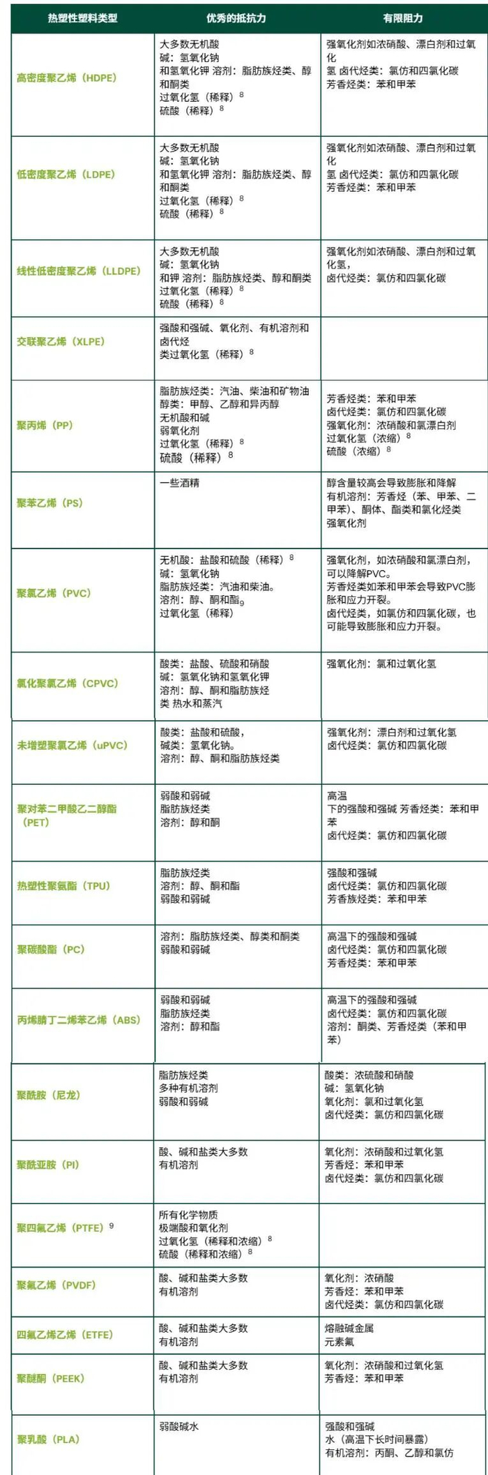 图1:常见热塑性塑料性能(包含耐化学性)